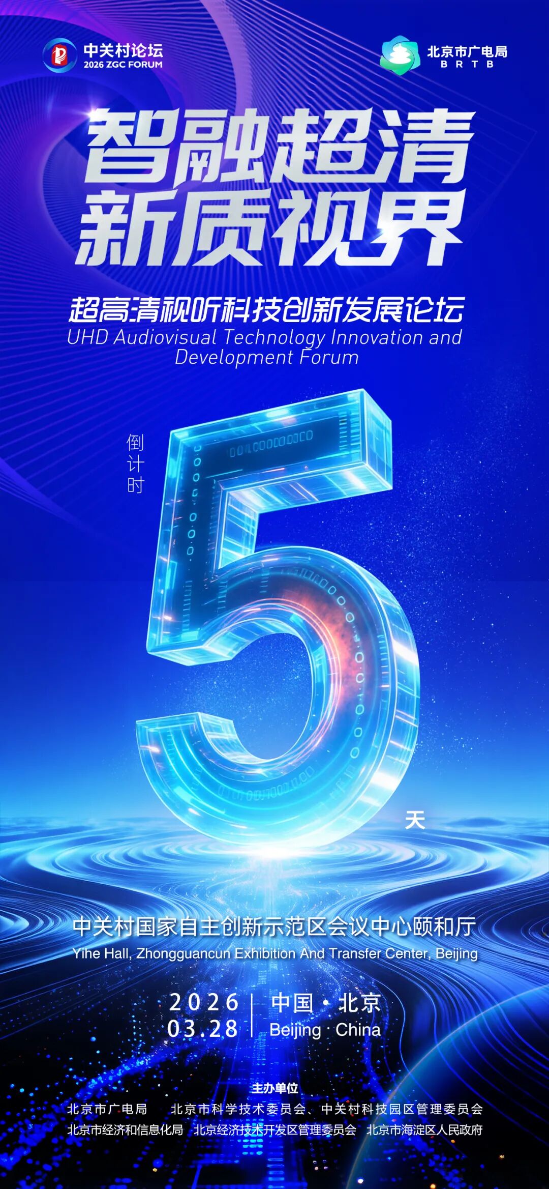 2026年中关村论坛年会将于3月25日至29日在北京举办。活动期间,由北京市广电局、北京市科学技术委员会、中关村科技园区管理委员会、北京市经济和信息化局、北京经济技术开发区管理委员会、海淀区政府主办,世界超高清视频产业联盟承办的“超高清视听科技创新发展论坛”将于3月28日上午在中关村国家自主创新示范区会议中心正式召开。