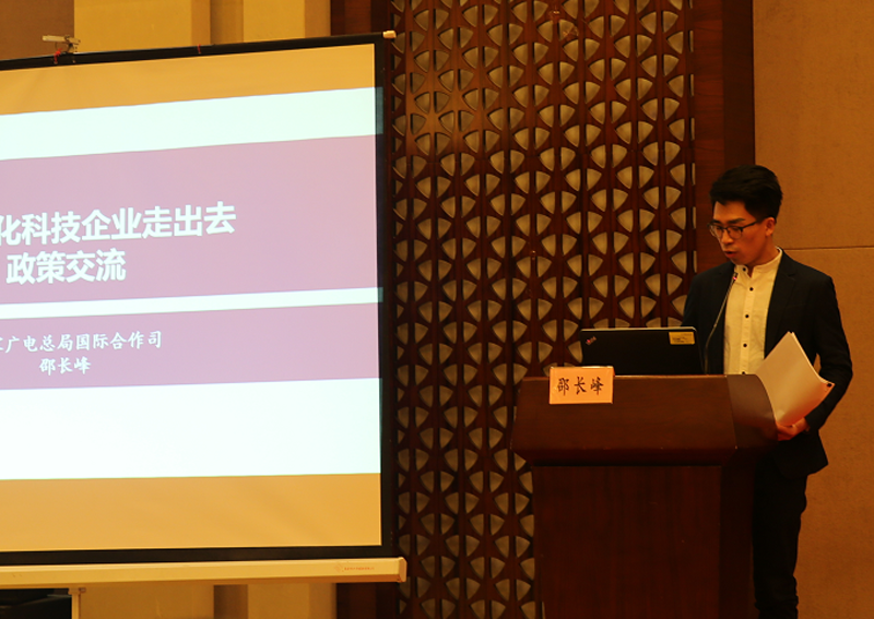 此次会议邀请到国家广播电视总局国际合作司邵长峰,结合“一带一路”倡议,从国家行业主管层面为推动我国广电文化科技企业发展,在推动国际交流,深化产业合作等方面的扶持政策和相关活动进行了解读。