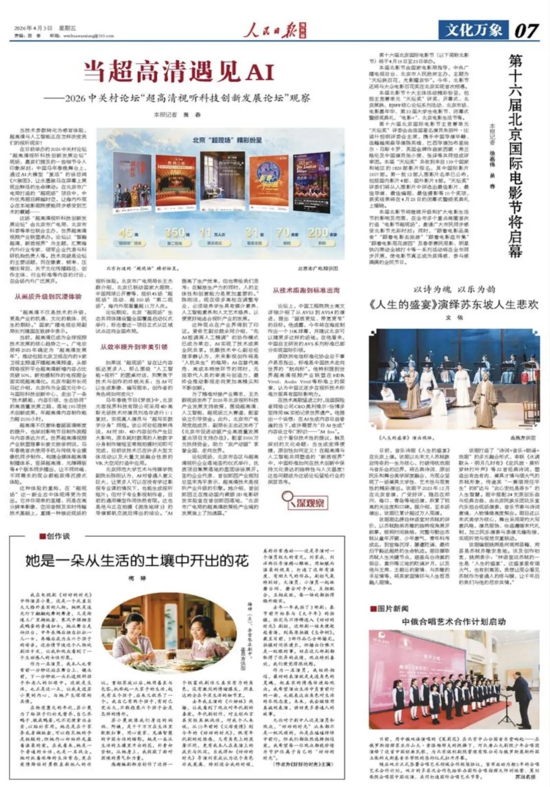 据人民日报海外版报道,日前,在北京市广电局、北京市科委等单位联合主办的2026中关村论坛年会“超高清视听科技创新发展论坛”现场,嘉宾们提及的一些细节令人印象深刻:中国马年春晚舞台上,通过AI大模型“复活”的徐悲鸿《六骏图》,让水墨骏马在屏幕上展现出鲜活的生命律动;在北京市广电局打造的“超现场”项目中,中外优秀剧目跨越时空,让海内外观众在本地影剧院便能同步感受到艺术的震撼……