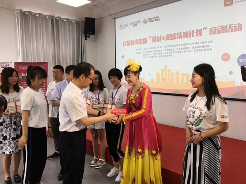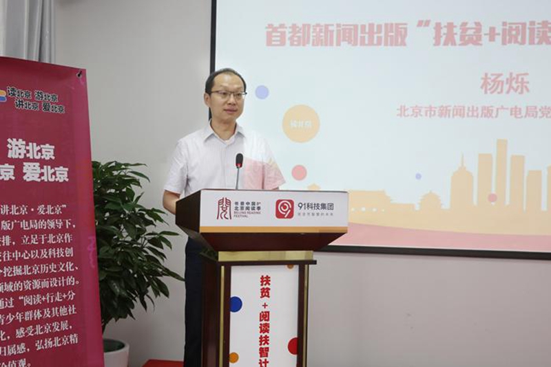 由北京市新闻出版广电局和北京市扶贫协作和支援合作工作领导小组办公室联合主办首都新闻出版“扶贫+阅读扶智计划”启动活动7月15日在北京91金融大厦举办。北京市新闻出版广电局局长杨烁,北京市扶贫协作和支援合作办公室副主任汪兆龙、智力支援处处长周健,北京市新闻出版广电局公共服务处处长王亦君、数字出版处处长马德献,商务印书馆总经理于殿利,樊登读书创始人樊登,91科技集团董事长许泽玮,掌阅科技董事长兼CEO成湘均等十余个援建合作单位代表,以及来自新疆和田市墨玉县教育局的相关领导共同出席了启动活动,北京电视台新闻频道马迟主持了启动活动。91科技集团还举办第三届新疆墨玉英才北京行活动,这是全民阅读扶智扶贫的具体举措,该活动请新疆墨玉的小朋友们来北京参观学习交流,亲临感受改革开放40周年的巨大成就,无缝传递着祖国大家庭的温暖,不仅有助于激发各位小朋友的读书热情、培育科学思维,而且更好地用阅读扶智力、扶志气。