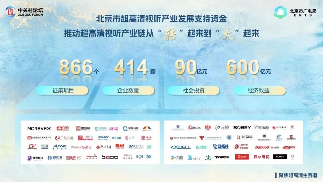 自2024年全国试点工作启动以来,北京市超高清视听产业发展支持资金累计征集项目866个,覆盖企业414家,带动社会投资近90亿元,产生经济效益超600亿元,推动产业链实现由“转”起来到“火”起来的跨越。
