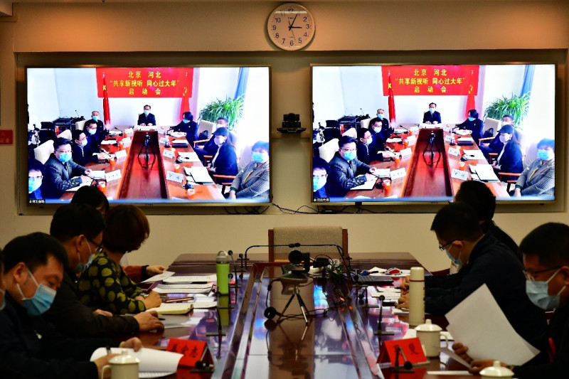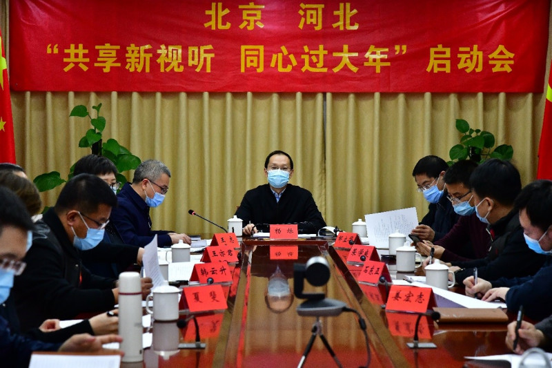 为落实中央“就地过年”倡议,推进京津冀新视听协同发展,丰富春节期间人民群众的精神文化生活,2月3日下午,北京市广播电视局与河北省广播电视局以视频会议的形式举办京冀“共享新视听 同心过大年”活动启动会。北京市广播电视局党组书记、局长杨烁,河北省广播电视局党组书记、局长王离湘,两地广电局领导及相关业务处室负责人,以及北京歌华有线电视网络股份有限公司、河北广播电视台、河北长城新媒体集团等单位负责人出席启动会。