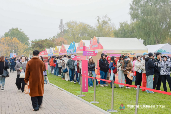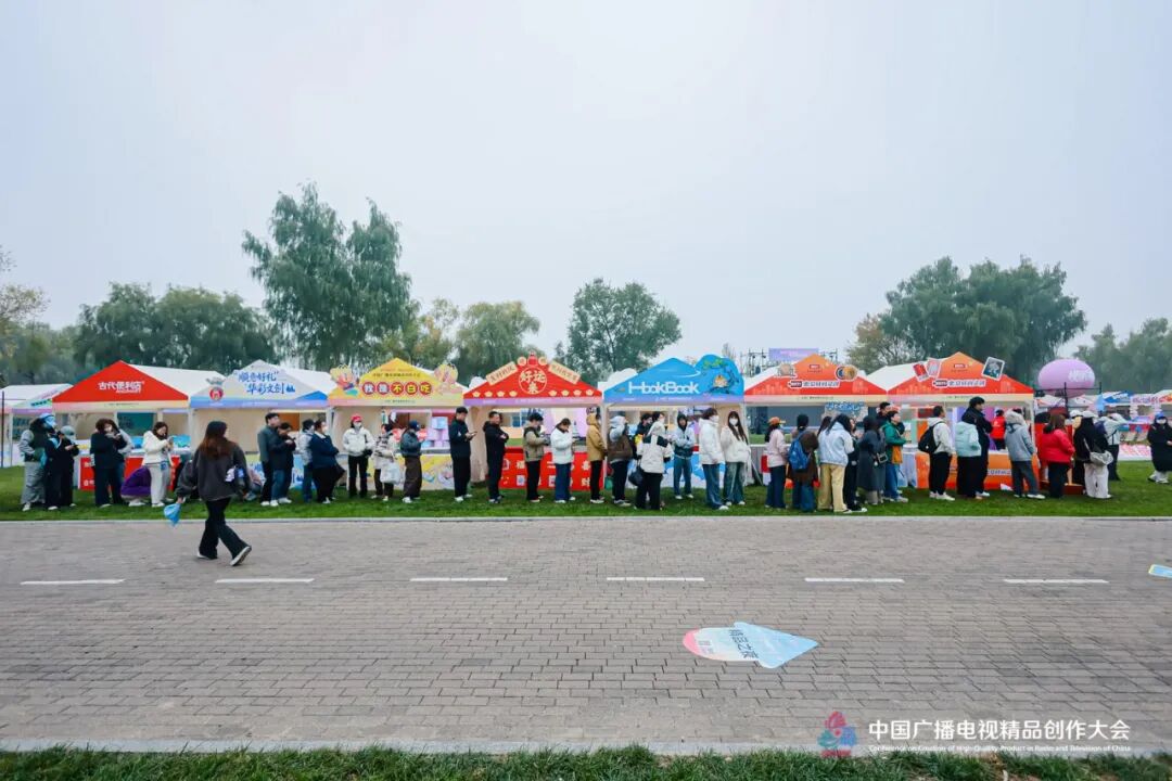 活动现场的6大主题展区、47个展位之中,每一处都是这种理念的生动实践。朝阳区联合怀柔区打造的“科技赋能与非遗融合体验区”,以798 VR影视体验与“聚元号”京作技艺开启文化与科技融合入口。薇薇猫、凯叔讲故事等品牌,以及首开文投、广电出版社、北京市文物局打造的“亲子互动与图书文创区”,实现了内容教育与文化普及双向赋能。爱奇艺、腾讯视频、优酷、芒果TV等打造的“头部视听平台内容生态区”,则用一系列热播作品及其周边产品,再度唤醒着观众们追剧时的情感共鸣。“十个勤天”展位更是人气爆棚,粉丝热情高涨,成为草坪市集上当之无愧的“人气王”。