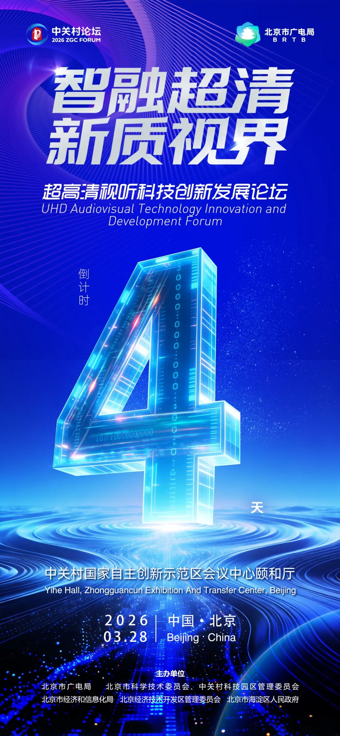 2026年中关村论坛年会将于3月25日至29日在北京举办。活动期间,由北京市广电局、北京市科学技术委员会、中关村科技园区管理委员会、北京市经济和信息化局、北京经济技术开发区管理委员会、海淀区政府主办,世界超高清视频产业联盟承办的“超高清视听科技创新发展论坛”将于3月28日上午在中关村国家自主创新示范区会议中心正式召开,汇聚科技精英与行业领军力量,共探AI与视听融合的无限可能。